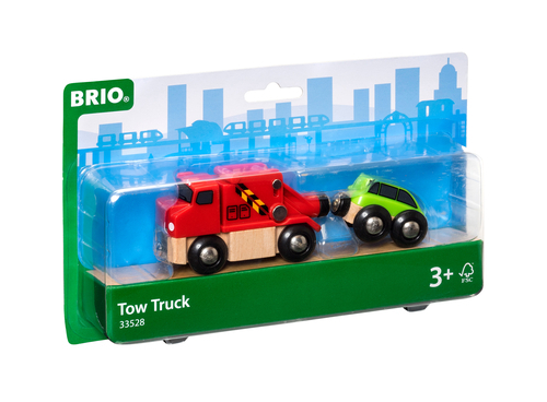 Tow Truck fra Brio er et sejt bjærgningskøretøj med lille bil på slæb. Legetøjet passer til Brios togskinner og er designet i deres velkendte solide og hårdføre materiale. Brio Worlds legetøj anbefales til alderen 3+