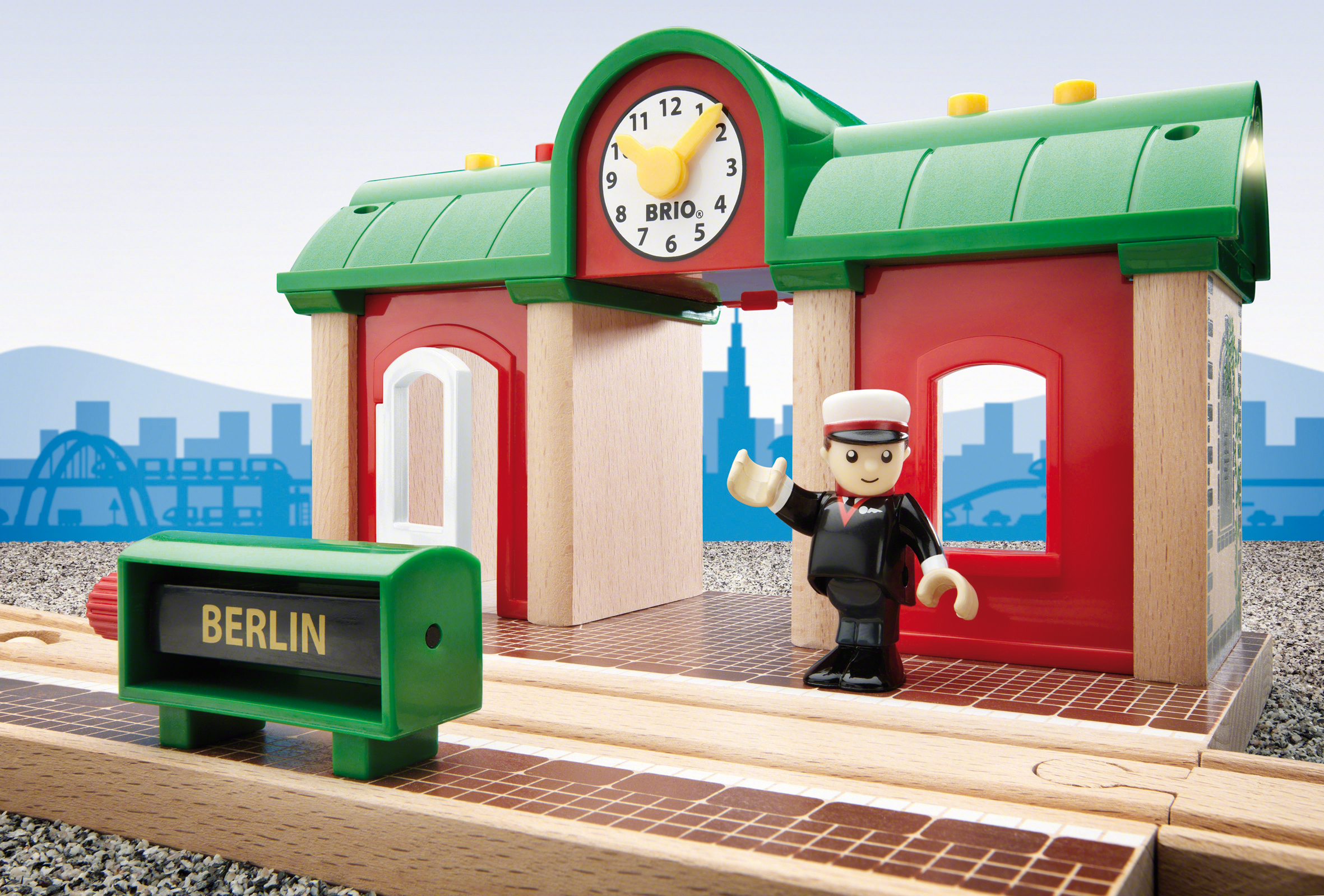 Svenske Brio har lavet denne station "Record & Play" Togstationen har en optager, så du med din egen stemme, kan lave optagelser der kan afspilles. Stationen har også forud indspillede motorlyde, skilte der kan dreje og lys. Der medfølger ikke batterier og legetøjet er anbefalet til aldersgruppen 3+