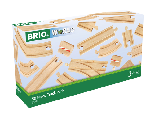 Stort skinnesæt fra Brio World med hele 50 dele. Dette er perfekt som udbygning til din togbane, og er helt i den robuste og solide kvalitet, som Brio legetøjet er så kendt for