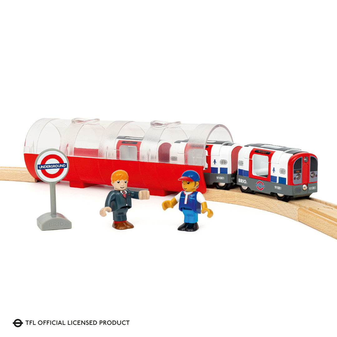 Brio har lavet en version af et London underground togsæt. Legetøjstoget består af lokomotiv og 2 vogne. Der medfølger to figurer og et undergrundsskilt. Dette lokomotiv og vogne kan bruges på din Brio togbane, og er anbefalet som legetøj, til aldersgruppen 3+