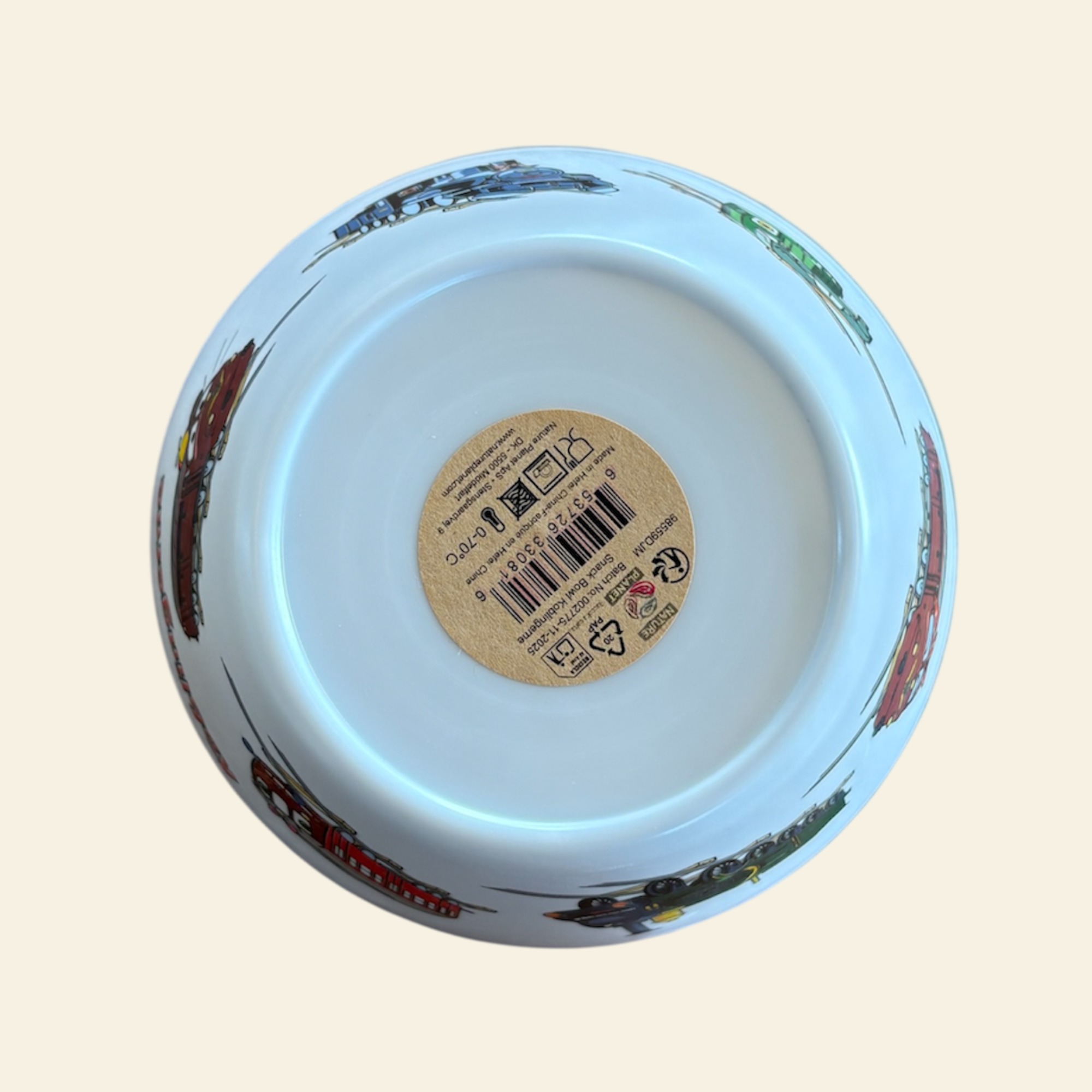 De populære motiver fra Koblingerne dekorere denne lille fine snack bowl skål. Skålen er 15 cm i diameter foroven og 8 cm i diameter i bunden. Skålen er også 7 cm høj.