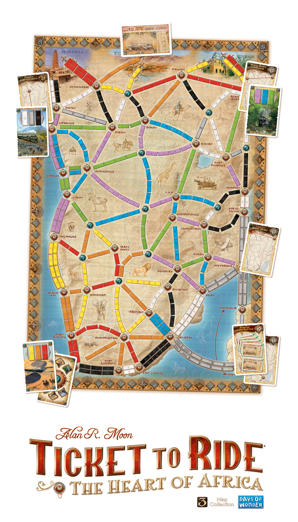 Det super populære spil Ticket to Ride er her lavet i en africa version. Dette er en udvidelse til serien, dette betyder, at det kræver at du i forvejen har et af grundspillene Europa eller USA.