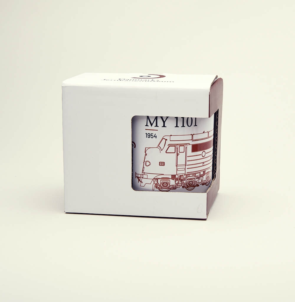 Kruset er med illustration af museets dieselelektriske lokomotiv MY 1101 fra 1954.