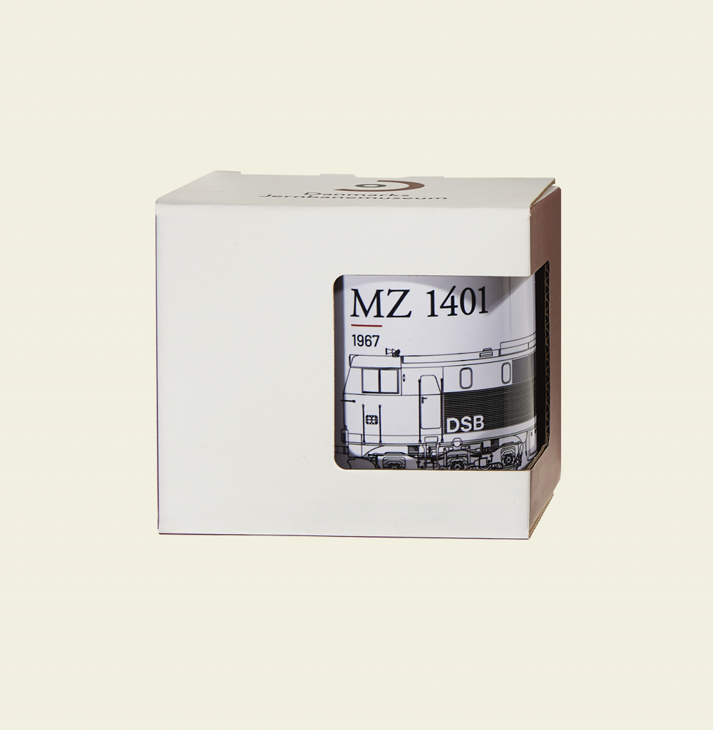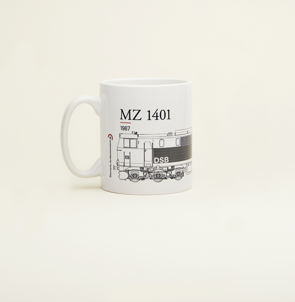 Danmarks Jernbanemuseum har fået produceret en række krus, specielt til museet, med motiver fra museets samling. Det nyeste krus er dette med en illustration af museets diesellokomotiv MZ 1401.