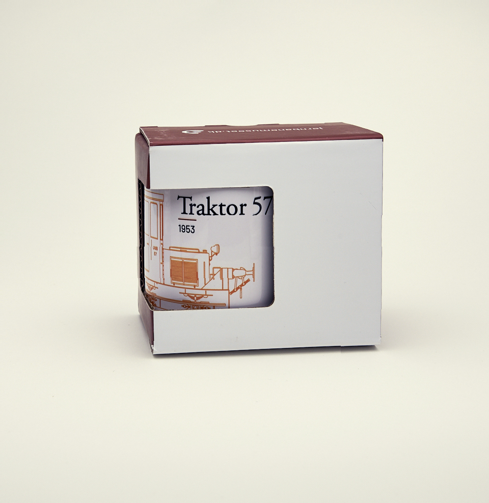 Kruset leveres i gaveæske. Traktor 57-kruset tåler opvaskemaskine.