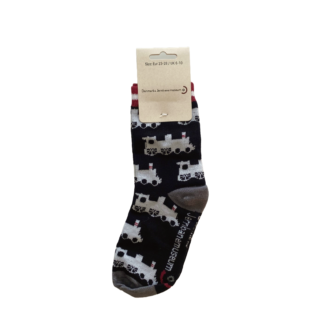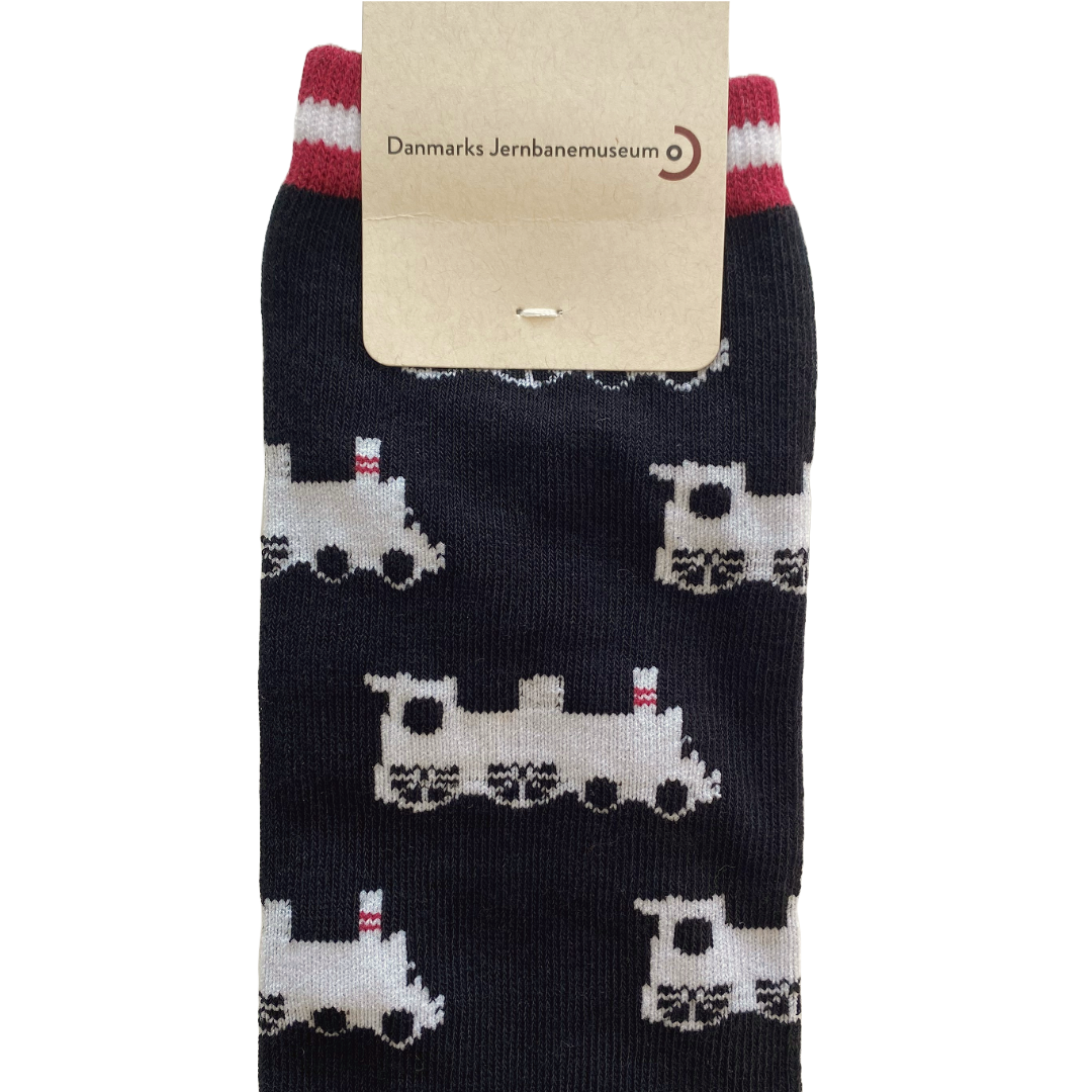 Sød strømpe med damplokomotiver på