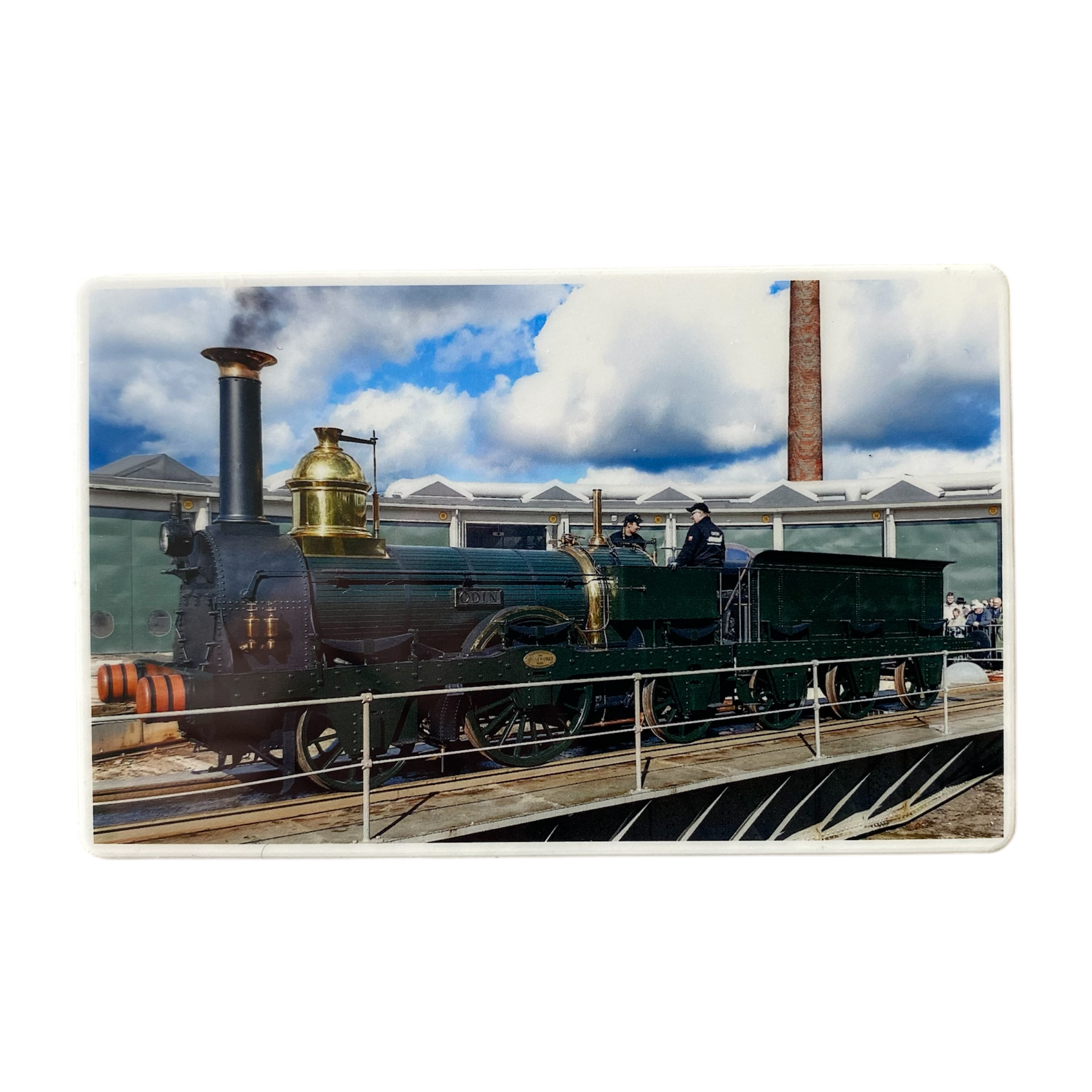 Tegning af Danmarks ældste bevarede damplokomotiv.