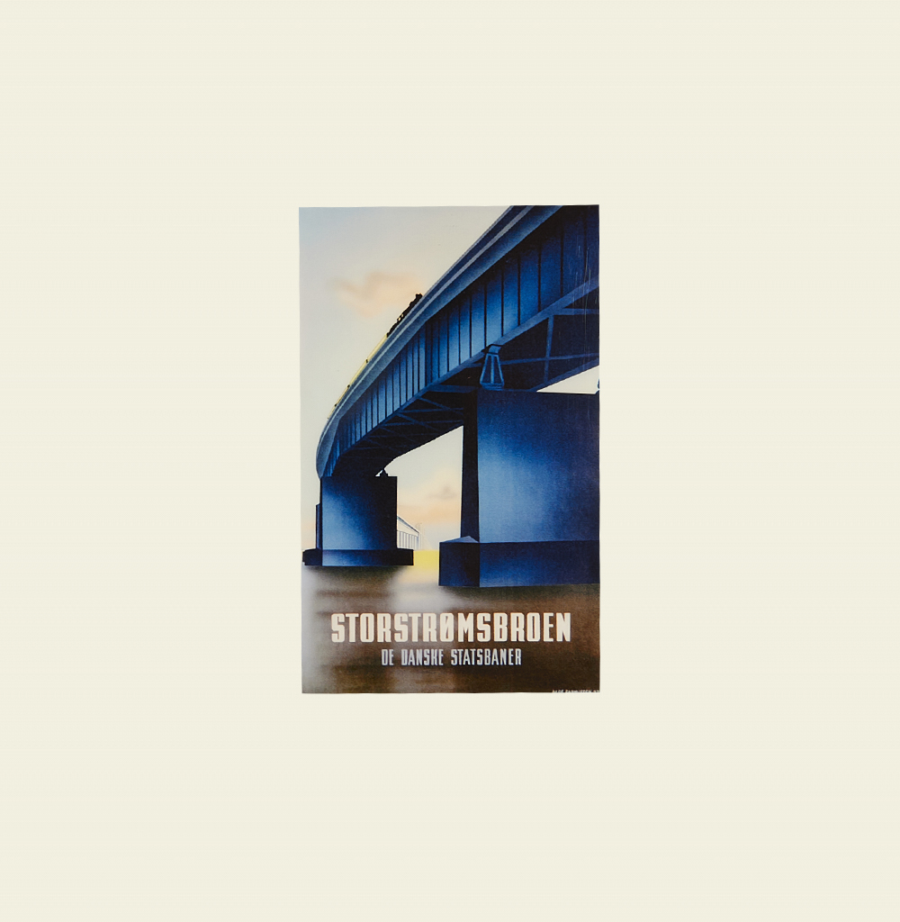 Magnet med DSB’s kendte plakat med Storstrømsbroen fra 1937. Tegnet af Aage Rasmussen.
