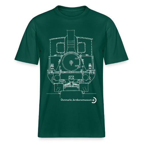 Økologisk T-shirt i sort. Her er den designet med det flotte lokomotiv O-maskinen. T-shirten har en pasform, så den passer både kvinder og mænd