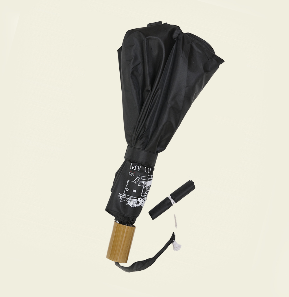 Flot sort foldeparaply med fint MY 1101 motiv på skærmen. Paraplyen har et fast greb, så den er behagelig at holde ved. Modellen skubbes op ved håndkraft. Denne foldbare paraply er 36,5 cm lang når den er lukket. Husk altid at lade skærmen tørre udslået, når den har været ude i regnen, så holder paraplyen længere