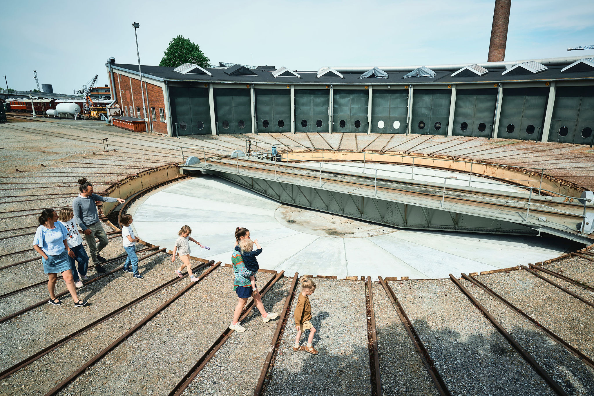 During the summer, we invite you inside the round shed from 1954. The depot has 21 tracks and is used to store and move railway equipment. Several times a week, vehicles are moved from one track to another using the large turntable. Go behind the scenes and learn about the depot, the turntable and the supply system. You can experience the turntable in operation every day at 10.40 and 14.10.