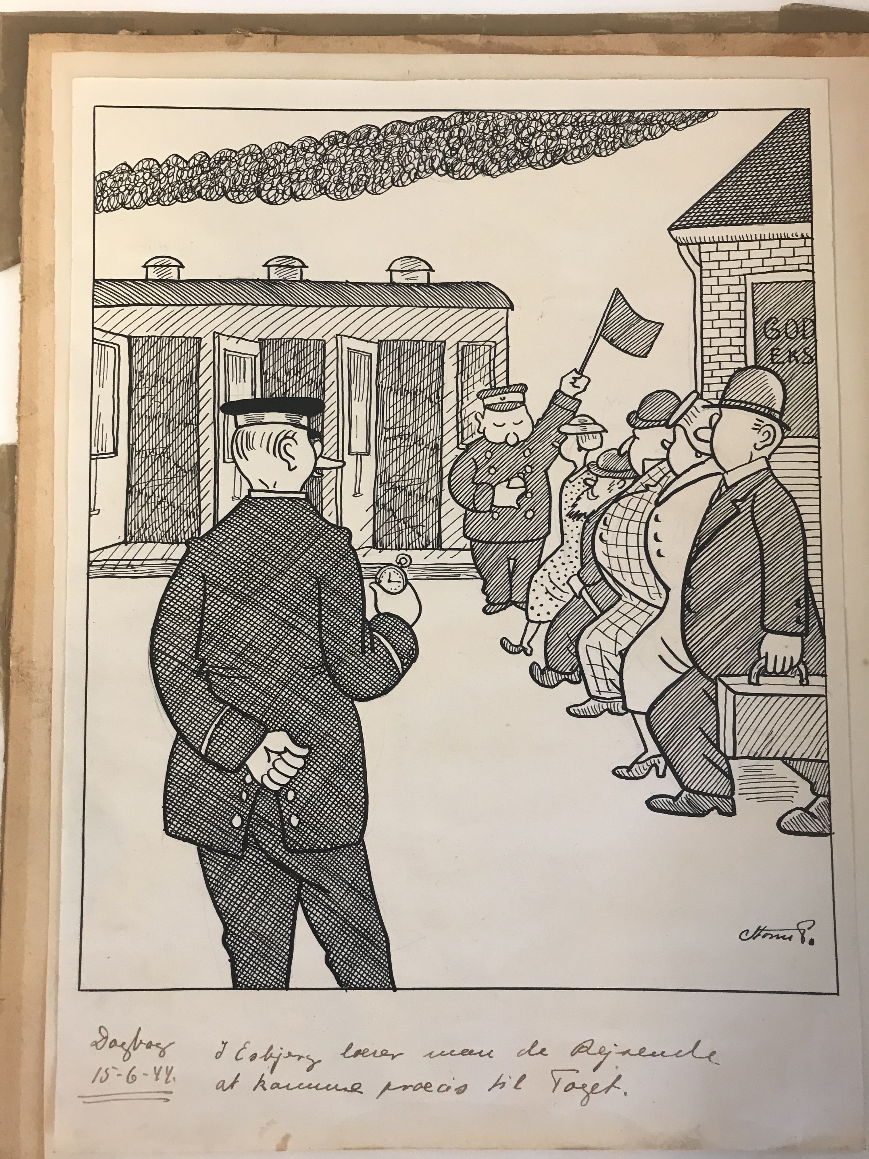 I november 1944 modtog ”Fru Stationsforstander Petersen” i Esbjerg et ganske særligt brev, der indeholdt en stregtegning. Tilsyneladende havde kvinden – hendes fornavn fremgår ikke af brevet – bedt om at få tegningen tilsendt, for den var ledsaget af følgende lille hilsen: ”Hermed den ønskede ’Dagbogstegning’ som jeg haaber er tilfredsstillende.” Beskeden var underskrevet af ”Rob. Storm Petersen”, bedre kendt som Storm P.
