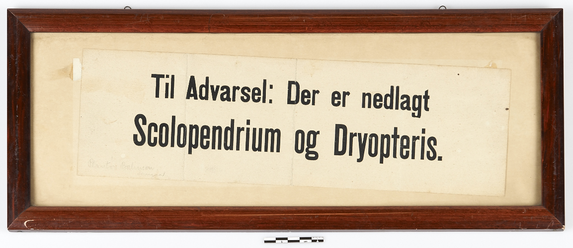 Bahnsen lod trykke en række skilte, som advarede imod Scolopendrium og Dryopteris. I en tid uden mulighed for at Google sig frem til præcis hvilke farlige gevækster de latinske navne dækkede over, virkede det tilsyneladende efter hensigten. I virkeligheden drejer det sig om to relativt uskyldige bregnearter. Nogle dryopteris, mangeløv på dansk, er dog giftige at spise, så helt uden sandhed var advarselsskiltene ikke.