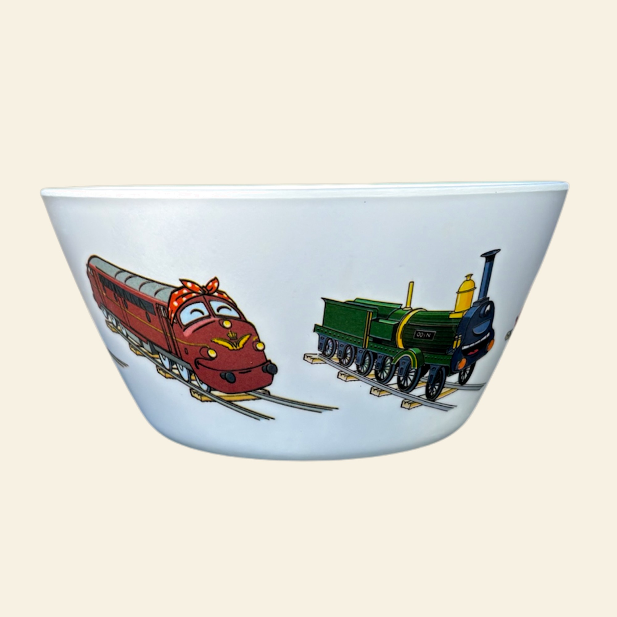 De populære motiver fra Koblingerne dekorere denne lille fine snack bowl skål. Skålen er 15 cm i diameter foroven og 8 cm i diameter i bunden. Skålen er også 7 cm høj.